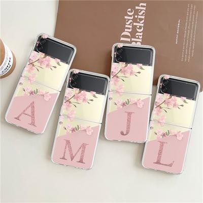 Samsung Galaxy Z Flip 3 4 Z Flip3 Flip4 үшін қаптама Шие гүлі Бастапқы әліпби Мөлдір қатты