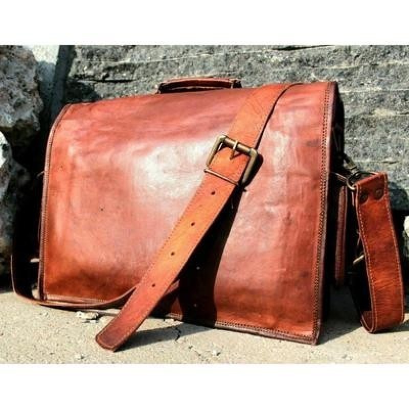 Винтажды табиғи теріден жасалған иық сөмкесі, ноутбук портфелі, ерлерге арналған