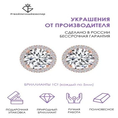 Алтын сырғалар-пусеттер, бриллианттармен 585 сынамалы ТВОЙЛИЧНЫЙЮВЕЛИР