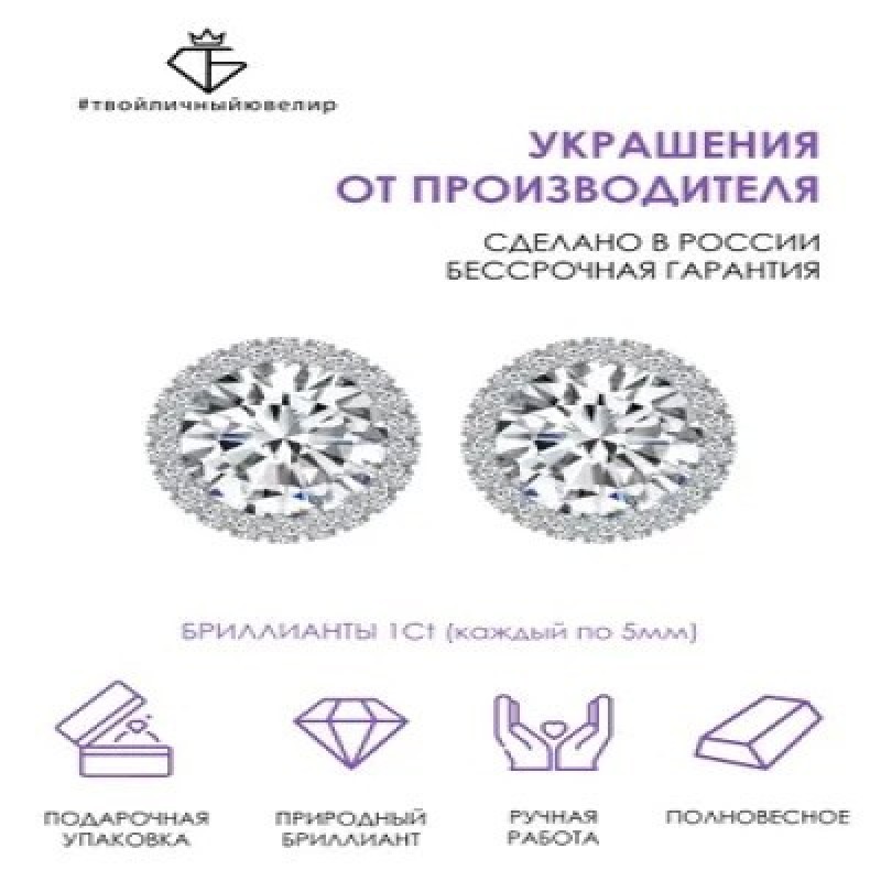 Золотые пусеты - гвоздики  с бриллиантами бренда ТВОЙЛИЧНЫЙЮВЕЛИР наполнены мощной энергетикой - подойдут для девушек и женщин, которые выбирают яркость и эффектность. Роскошное и в то же время лаконичное ювелирное украшение, выполненное из белого золота 585 пробы, подчеркнет Вашу неповторимость и откроет новые возможности для стильных экспериментов. Золотое изделие покрыто родием, который усиливает блеск благодаря своим светоотражающим способностям. В качестве вставки в серьгах используются бриллианты, способные на свету переливаться всеми цветами радуги и издавать невероятный блеск, придавая своей обладательнице женственность и элегантность. Дизайнерские сережки пусеты, выполненные опытными ювелирами России, оснащены удобной и надежной винтовой застежкой, которая обеспечивает прочную фиксацию ювелирного изделия на Вашем ушке. Тип конструкции делает золотые серьги самыми удобными - они не мешают одеваться, не цепляют волосы и, при правильном подборе размера, не доставляют дискомфорта во время сна. Именно по этой причине серьги из золота часто выбирают не только для взрослых девушек, но и для маленьких модниц. Благодаря минималистичному, продуманному дизайну серьги-гвоздики можно легко сочетать с любыми другими украшениями и нарядами. Такие пусеты из золота никогда не выйдут из моды и всегда будут актуальны. Сережки-гвоздики – одни из самых популярных моделей, они универсальны, и их легко подобрать под любой типаж и образ, стиль одежды, возраст владелицы. Аккуратные и практичные пусеты с бриллиантом - это универсальное украшение для любого образа:  на деловой встрече в комбинации со строгим офисным нарядом, на романтическом свидании, и даже на роскошном приеме. Небольшой размер сережек подчеркивает женственность владелицы и ее элегантность при любых обстоятельствах. Бриллиантовые пусеты идут всем без исключения: блондинкам и брюнеткам, смуглым и светлокожим девушкам, голубоглазым и кареглазым. Если вы хотите быть в центре внимания или же ищете украшение на торжественное мероприятие, то серьги с драгоценными камнями — это ваш вариант! Пусеты поставляются в брендированной упаковке и идеально подходят в качестве замечательного подарка на особую дату или просто так, чтобы восхитить и удивить любимую жену, маму или дочку и оставить неизгладимое впечатление. Купив ювелирные изделия от производителя ручной работы, вы получаете бессрочную гарантию! С любовью и заботой о Вас, ТВОЙЛИЧНЫЙЮВЕЛИР!