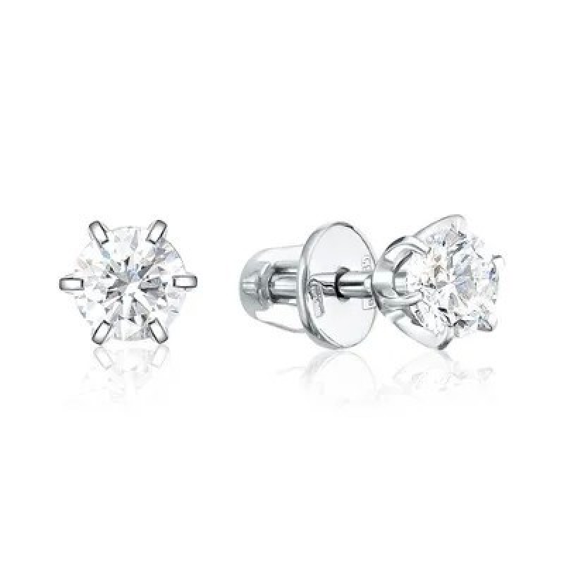 Украшение выполнено из белого золота. Вставка: бриллиант. Характеристики: 2 Бриллиант кр-57 0,800 - 0,900 Ct 3/5 А . Средний вес 1,68 гр. Значение веса изделия на фото и в характеристиках являются примерными и могут отличаться от фактического.