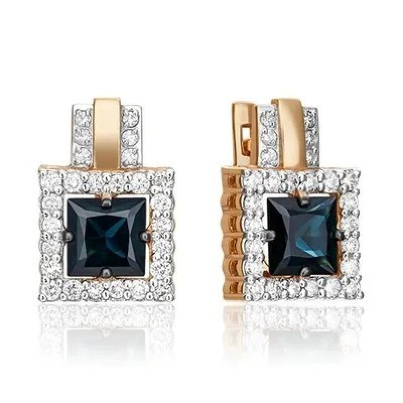 PLATINA Қызыл алтыннан жасалған сырғалар, ағылшын ілмегімен, 585 сынамасы, сапфир мен алмаздармен