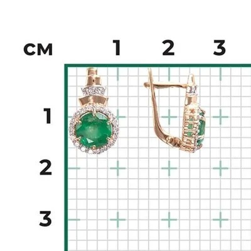 PLATINA Қызыл алтыннан жасалған сырғалар, ағылшын ілмегімен, 585 сынамасы, изумруд пен алмаздармен