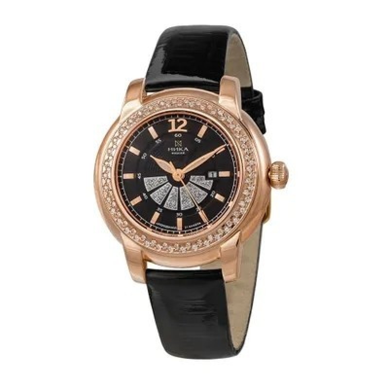 Әйелдер сағатының автоподзаводымен механизмі жақсы талғам мен күрделі механизмдерге деген сүйіспеншілікті білдіреді. Үлкен алтын корпус фианиттердің мол шашырауымен қолға жағымды ауырлық береді, оны көптеген әйелдер ұнатады. Қарапайым циферблатта қатаң сағат белгілері жұмбақ түрде жарқырайды. Қосымша акценттердің ішінде ерекше атап өтуге тұрарлық нәрсе — мұқият жасалған күн апертурасы мен ретро стильдегі баптау басы. Орташа салмағы, г: Алтын - 17,027 г Корпус материалы: Қызыл алтын 585° Әйнек: минералды, сапфирлы жабынымен Орнату: фианиттер Сағат механизмі: TMI NH05, ЖАПОНИЯ Су өткізбейтіндігі: 1АТМ Батарея түрі: