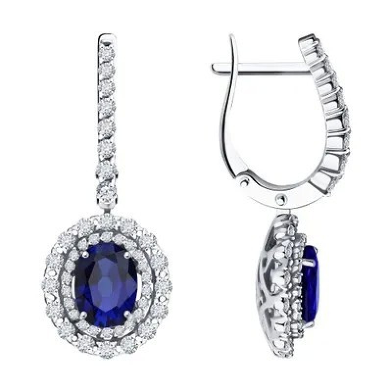 SOKOLOV Diamonds, Ақ алтыннан жасалған сырғалар, алмаздар мен сапфирлермен, 2021098-3, декоративті,