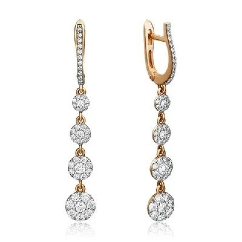 PLATINA Қызыл алтыннан жасалған 585 сынамалы ағылшын түймелі сырғалар, бриллианттармен
