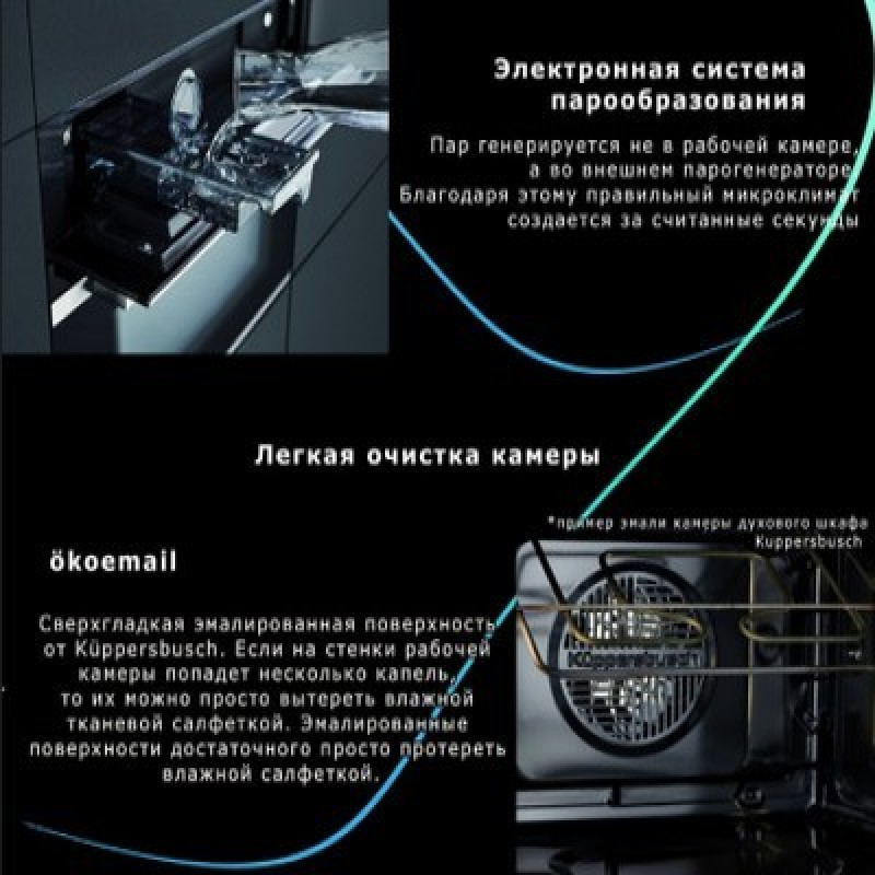 Бу генерациясы Бу жұмыс камерасында емес, сыртқы бу генераторында пайда болады. Осылайша, дұрыс микро климат бірнеше секунд ішінде қалыптасады.