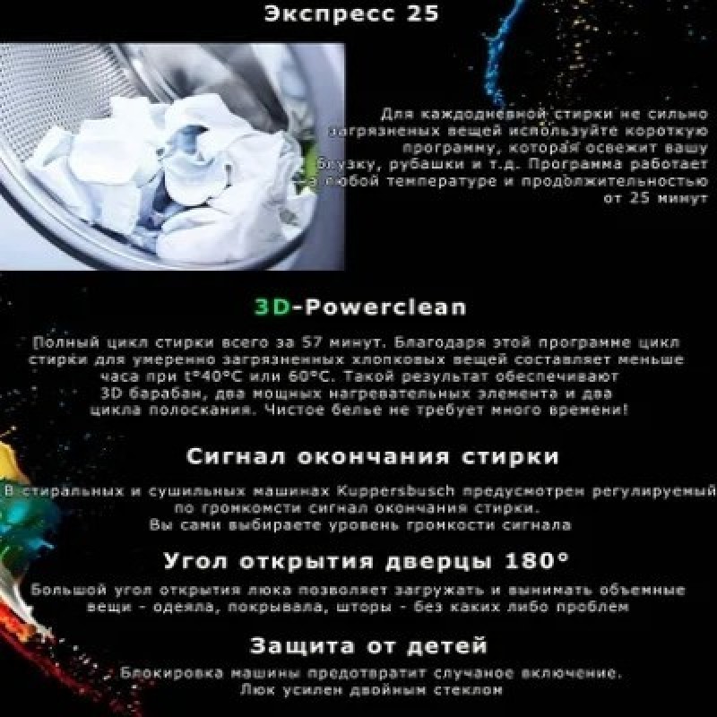 20 минуттан бастап кез келген температурада экспресс-жуу бағдарламалары