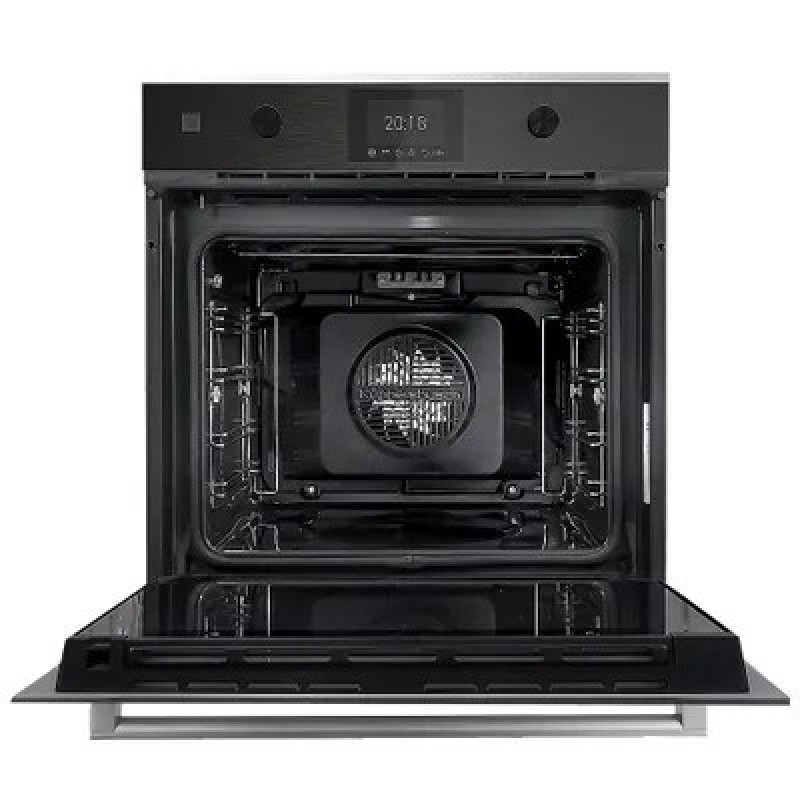 Духовой шкафтың артқы қабырғасында желдеткіш айналасында орнатылған сақиналық қыздыру элементі әртүрлі тағамдарды бірнеше деңгейде пісіргенде дәм мен иістің араласпауын қамтамасыз етеді.