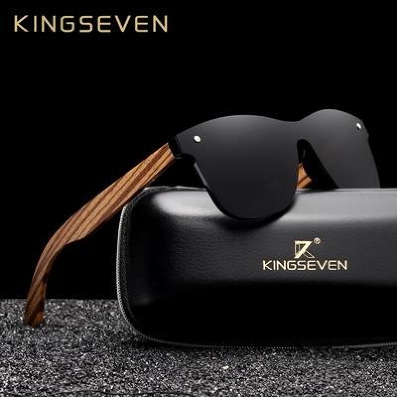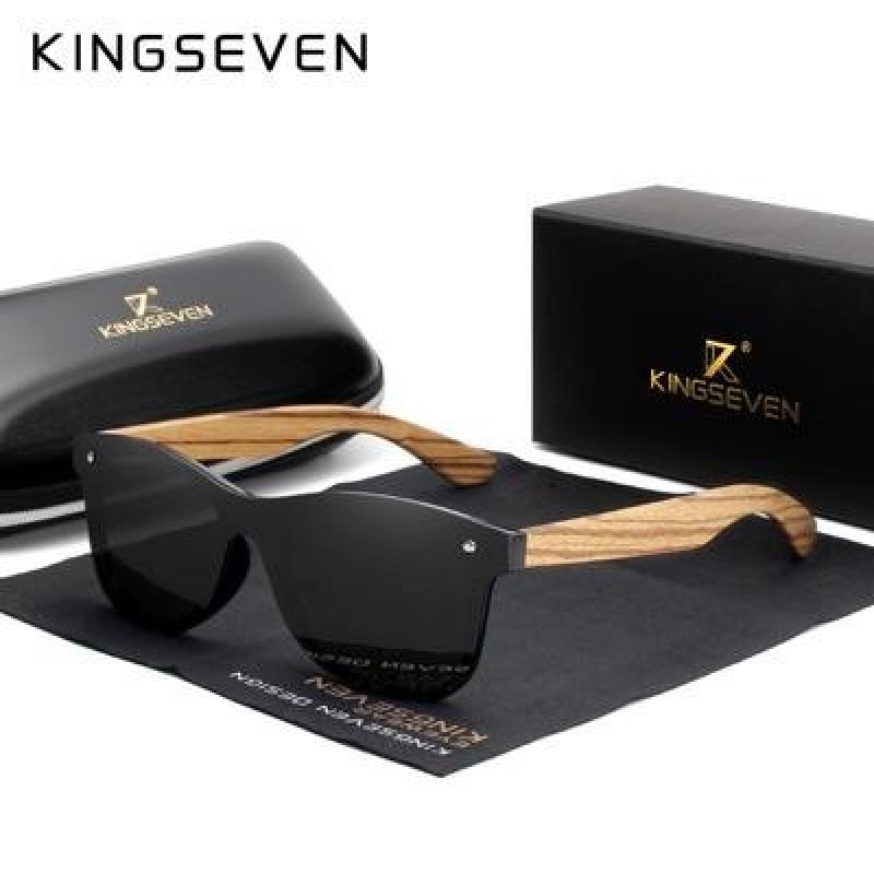 KINGSEVEN Поляризацияланған төртбұрышты күннен қорғайтын көзілдірік Ерлер Әйелдер Зебра Ағаш жақтау Айна Жазық линза Жүргізу UV400 Көзілдірік
