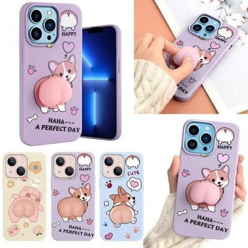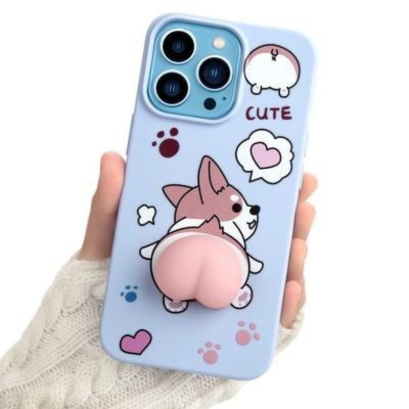 Мультфильм Сүйкімді 3D Ашылатын Жұмсақ Персик Корги Ноут Телефон қаптамасы iPhone 13 12