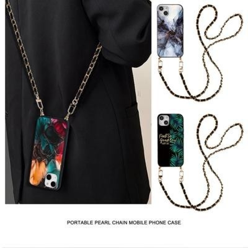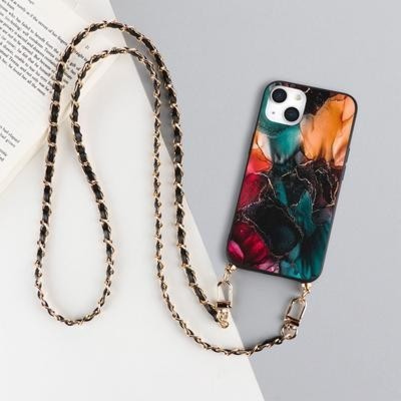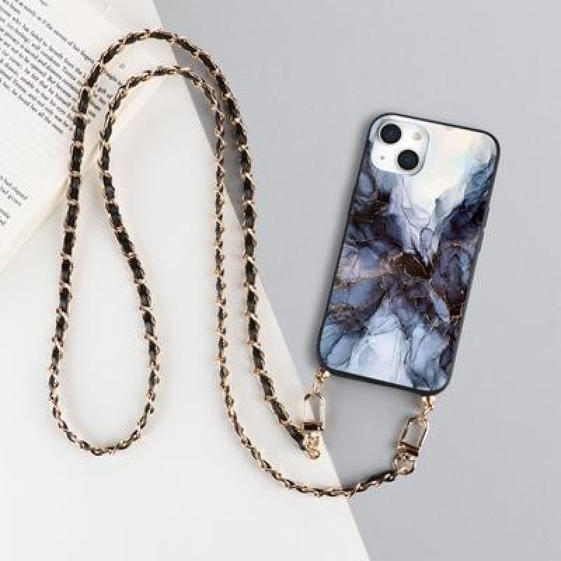 Роскошьты марморлы кроссбоди белбеу мойынсұнғыш былғары білезік тізбек Телефон қаптамасы iPhone 14