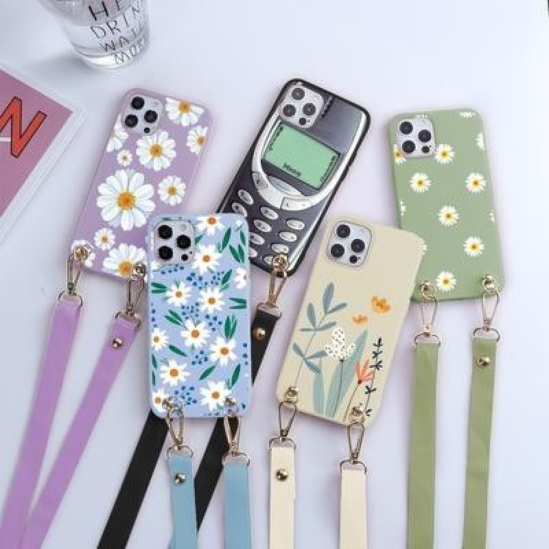 Гүлді Пара Crossbody Белдік Шнур Цепочка Белдік Телефон қаптамасы iPhone 11 12 13 үшін