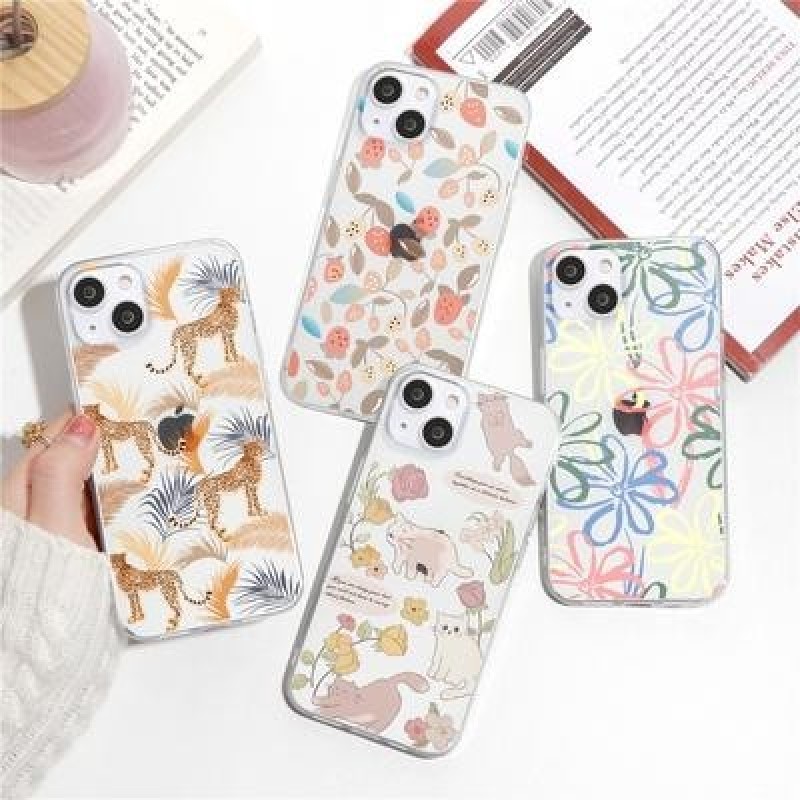 Арт Линия Гүл Симпатичный Мысық Мөлдір телефон қаптамасы iPhone 14 Plus 13 12 11 X XR XS S үшін ₸178591.0 |