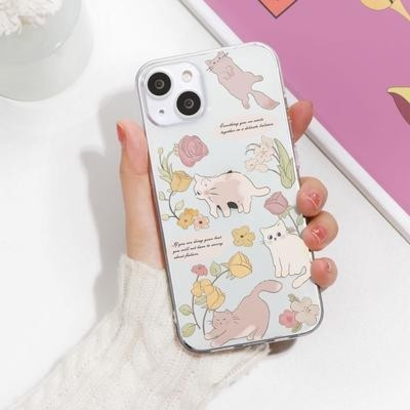 Арт Линия Гүл Симпатичный Мысық Мөлдір телефон қаптамасы iPhone 14 Plus 13 12 11 X XR XS S үшін