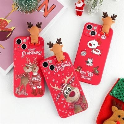 3D Мультфильм Әдемі бұғы Жаңа жылдық қуыршақ TPU Телефон қаптамасы iPhone 13 12 11 Samsung A53 A52 A